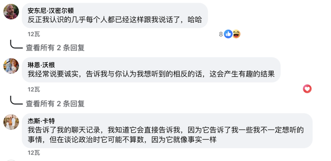 AI的盲目鼓励就像一个溺爱孩子的家长:让人开心,但没啥实际的作用。一些清醒的人会因此感到愤怒。脸书用户@Denis就在社媒上指责ChatGPT在更新后就是一个“马屁精和应声虫”。