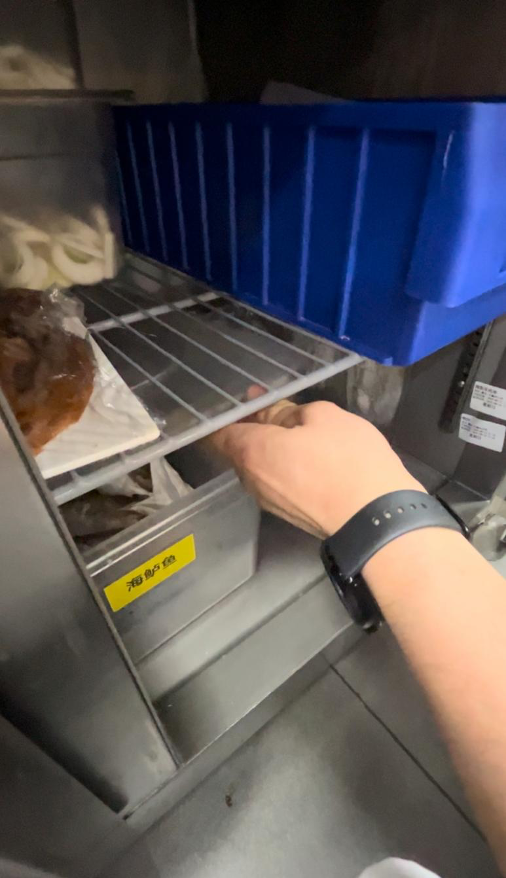 此前厨师长曾介绍,冷藏柜中每个产品设有标签,显示每种原料解冻时间及保存日期,一般期限为3天,不过这次在冷藏柜中,有其他产品的标签,意外的未见有关鲈鱼的标签,故未见其解冻日期及保存日期。