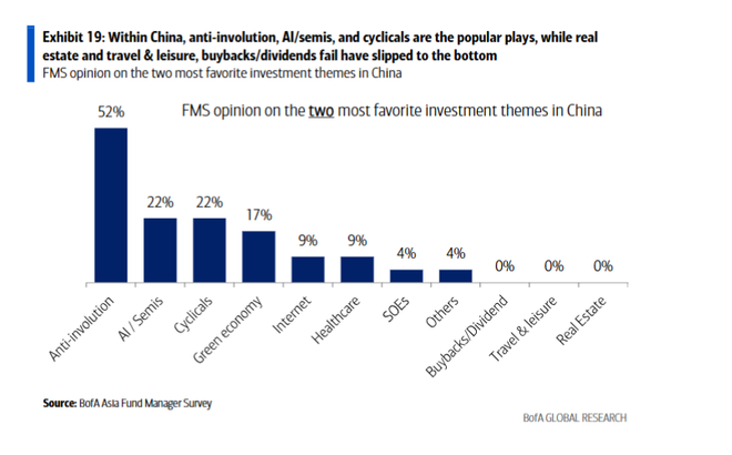 而 “反内卷”成为最受青睐的中国投资主题,热度远超人工智能/半导体和周期股。尽管短期情绪有所改善,但仍有70%的受访者认为中国股市是“结构市”。“逢高减仓”意愿增强,比例从7%大幅增至17%。