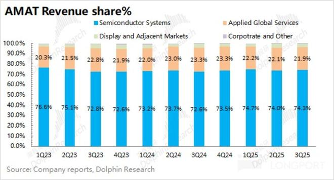 c)逻辑与存储双轮驱动:面对半导体周期性波动,应用材料以逻辑市场(占 7 成收入)为基本盘,对冲存储市场(占 2-3 成)的强周期风险。2025 年逻辑端借台积电 AI 芯片需求稳增长,存储端受 HBM 相关开支反弹的带动,双市场互补布局,使其在行业波动中保持相对稳健。