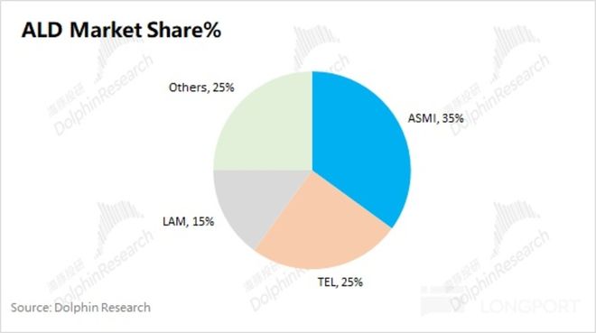 由于 ALD 设备需与制程工艺深度绑定,阿斯麦国际 ASMI、TEL 通过与台积电、三星的联合研发早早锁定先进制程订单,而应用材料 AMAT 的 ALD 设备更多作为其 “沉积 + 刻蚀” 综合解决方案的补充,未能建立独立的客户粘性,导致在先进制程招标中屡屡错失份额。