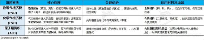 对于不同的材料和场景,当前主要的薄膜沉积方法有物理气相沉积(PVD)、化学气相沉积(CVD)和原子层沉积(ALD)三类。