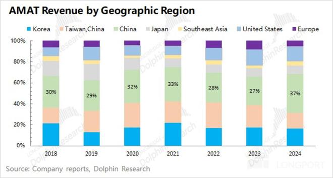 从应用材料的地区收入变化看,遵循了半导体制造业的产业转移的节奏,依次是 “日本 - 韩国及中国台湾 - 中国大陆” 的过程。而这也反映了公司的产品力,在各个阶段,分别都得到了不同地区客户的青睐。