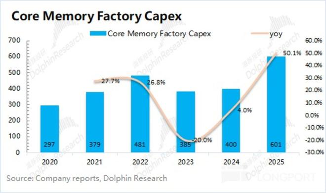 在 AI 存储需求的带动下,三大存储厂商的合计资本开支在 2025 年有望实现 50% 的提升,达到 600 亿美元左右。