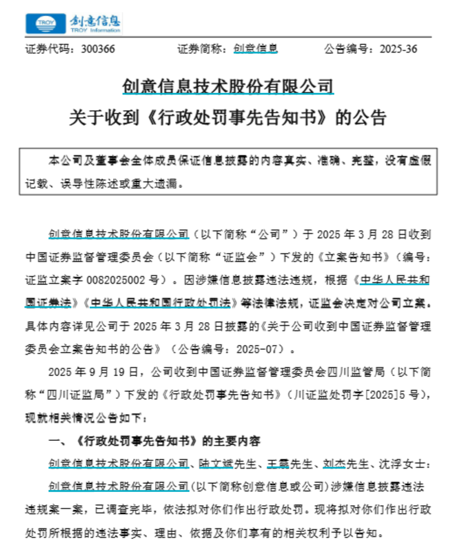 创意信息涉嫌信披违法违规被ST,高管被罚款400万元