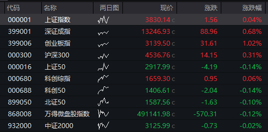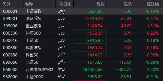 A股:截至发稿,沪指跌0.19%,深成指涨0.47%,创业板指涨1.31%。![]()