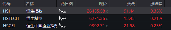 恒指高开0.35%,恒生科技指数涨0.21%。