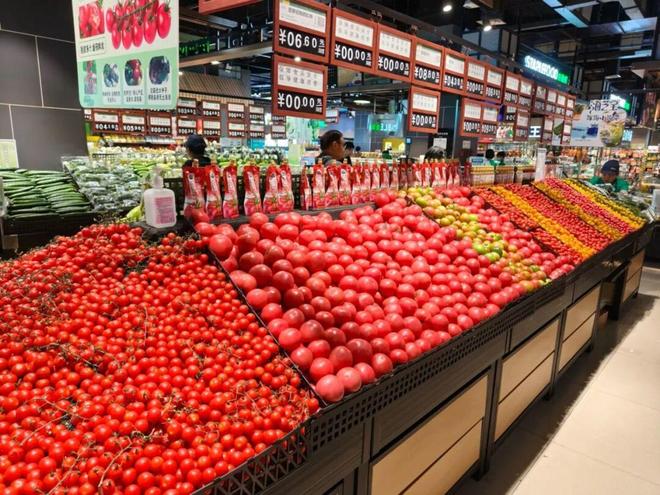 另一个细节是,信誉楼超市内不同种类的西红柿、圣女果都摆放在一个堆头,不仅消费者挑选购买时更方便,从视觉上也更明亮显眼。