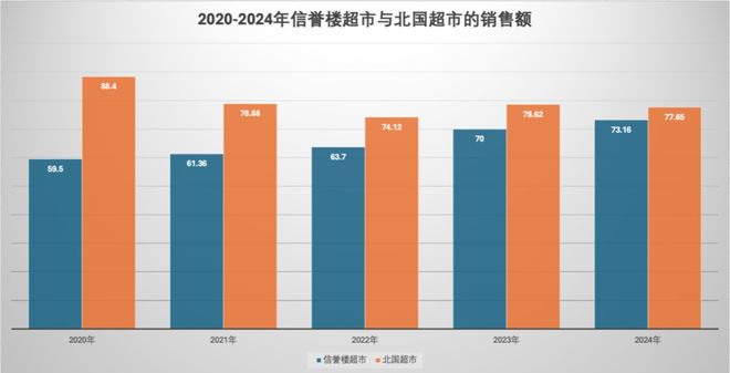 根据中国连锁经营协会2024年数据,信誉楼超市以73.16亿元总销售额(同比增长4.4%)跻身中国超市TOP100榜单第23名;北国超市虽销售额同比下滑1.2%至77.65亿元,但仍以第20名的位次留在榜单内,门店总数达65家。