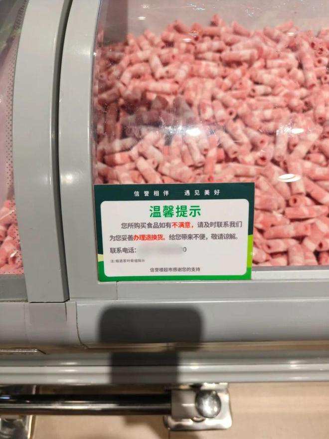 走进如今的信誉楼,服务理念仍在细节中落地:熟食区柜台显眼处标注“您所购买的食品如有不满,可联系我们办理退换货”及联系电话,上方则辅以“信誉相伴、遇见美好”的标语。