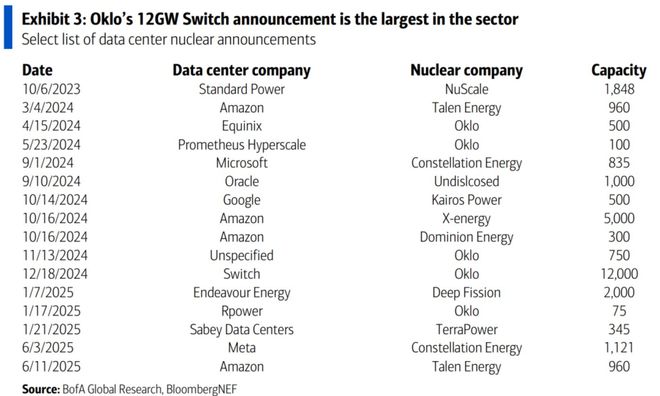 *注:OKLO和Switch签署的12GW协议,BofA