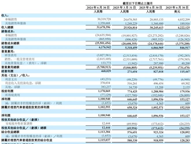 8月28日,理想汽车公布的2025年第二季度财报显示,公司第二季度营收实现302.46亿元,同比下滑4.5%;季度净利润为10.97亿元,与去年同期的11亿元几乎持平,季度汽车总交付量为11.11万辆,同比增长2.3%。