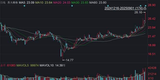 二级市场上,截至9月1日收盘,苏大维格大涨8.37%报27.84元/股,最新市值72.29亿元,今年来公司股价上涨近三成。