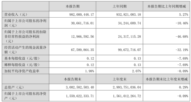 2025年上半年,公司增收不增利,实现营业收入为9.82亿元,同比增长5.27%;归母净利润为3066.17万元,同比下滑10.46%;扣非净利更是大幅下滑46.68%至1296.66万元。