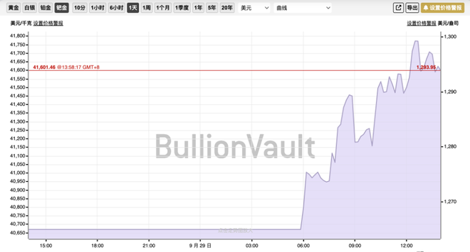 - 钯金上涨 2.2% 至每盎司 1,297.67 美元。