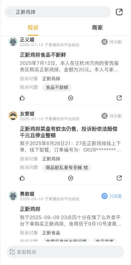 一方面,正新鸡排的产品口碑持续下滑,被消费者吐槽“面粉越裹越厚,肉越做越薄”;另一方面,频繁出现的食品安全问题与服务体验的不足,持续损害品牌形象,难以留住追求稳定品质的顾客。此外,在健康饮食观念深入人心的今天,油炸食品品类整体面临挑战,鸡排本身的受欢迎程度也存有变数。