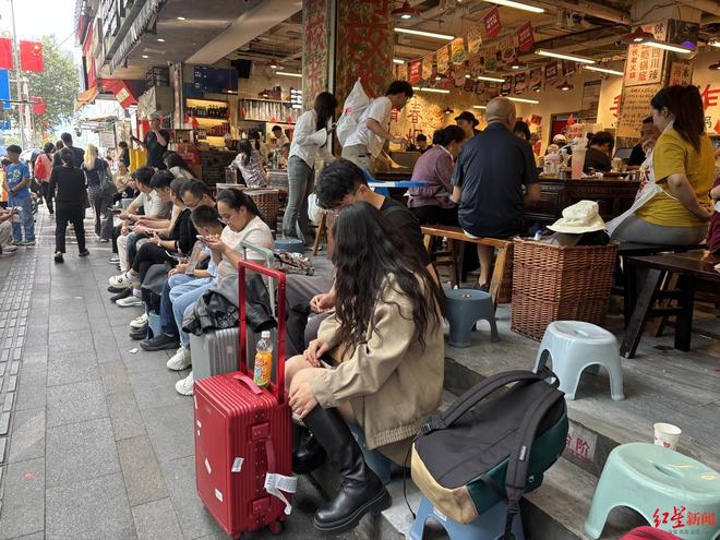 光头香辣蟹(成都太古里旗舰店)的工作人员也向记者透露,自国庆中秋假期开启以来,店内客流量大幅攀升,其中不乏许多拖着行李箱前来就餐的外地游客。“平时门店排队会持续到晚上10点多,而进入国庆中秋假期后,这几天排队时间甚至会延长至凌晨1点。”