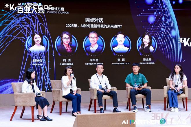 36氪在AI Partner百业峰会特备策划了一场“2025年,AI如何重塑场景的未来边界?”的圆桌对话。36氪资深作者【主持人】邓咏仪,中关村科金副总裁刘倩、长亭科技解决方案副总裁周辛酉、Mootion联合创始人&CPO童超、思必驰IOT事业部副总祝迎君,几位大咖供同行探讨「中国式AI方案」的场景边界。