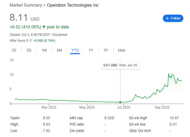一家成立以来年年亏损的房地产科技公司Opendoor,在2025年上演了资本狂欢。