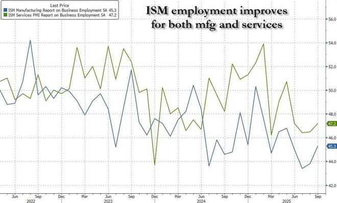 在官方数据缺失的情况下,私人部门替代数据源变得至关重要。供应管理协会发现制造业和服务业就业均从多月低点温和反弹,打消了市场最坏情况的担忧。