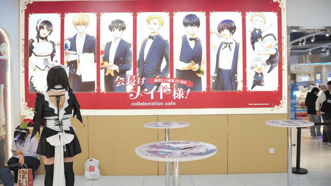 小寨银泰百货更是把"年轻"刻进了骨子里:外墙被涂成《非人哉》主题的"痛楼",红的、蓝的、粉的色块撞在一起,动漫角色的笑脸格外惹眼;旁边的三月兽CAFE里,《会长是女仆大人》的海报贴满墙壁,穿动漫角色服装的COSER端着咖啡走过,仿佛从屏幕里走了出来。