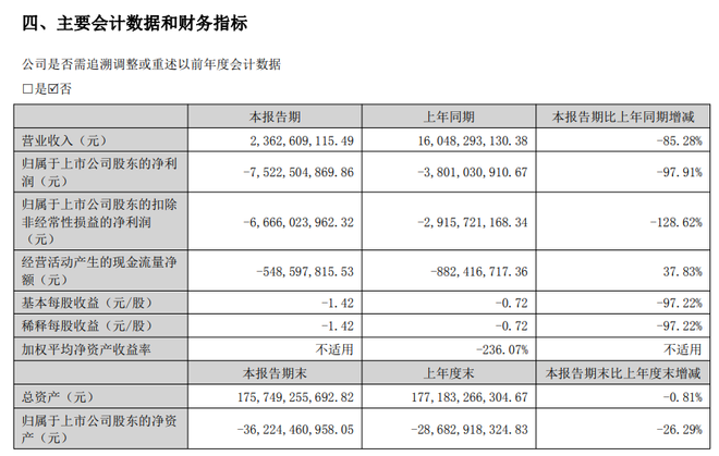 最新业绩方面,公司8月29日披露的2025年半年报显示,上半年*ST金科营业收入约23.62亿元,同比减少85.28%;归母净利润约-75.23亿元,同比减少97.91%;扣非净利润约-66.66亿元,同比减少128.62%;经营活动产生的现金流量净额约-5.486亿元。