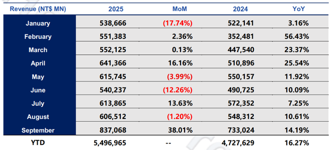 10月5日,鸿海最新公告显示,9月销售额8,370.7亿元台币,同比增长14%