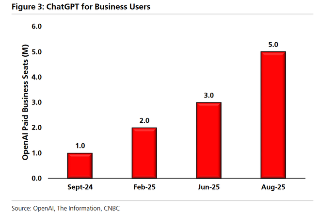 在用户结构方面,OpenAI最近披露其付费企业用户数量已突破500万,较6月的300万增长60%。如果总付费用户数为3500万的估算准确,企业用户约占付费用户基数的15%,不过,行业观察人士认为开发者日不太可能重点关注企业级新功能