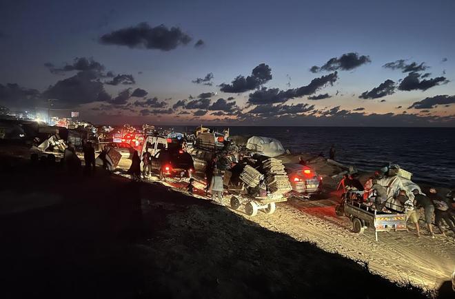 当地时间2025年9月30日,加沙地带中部,流离失所的巴勒斯坦人向南迁移,以躲避以色列的军事行动。视觉中国 图