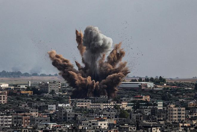 当地时间2023年10月7日,加沙城,以色列军队发动空袭后,烟雾升起。视觉中国 图