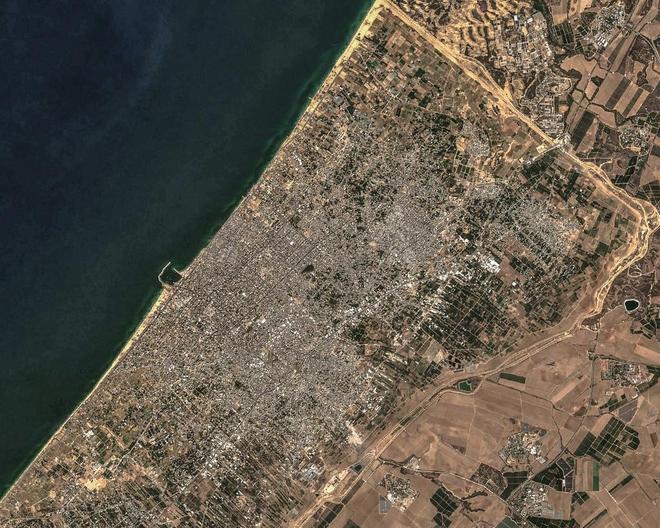 当地时间2023年9月27日,卫星图片显示加沙城和加沙北部的概况。视觉中国 图
