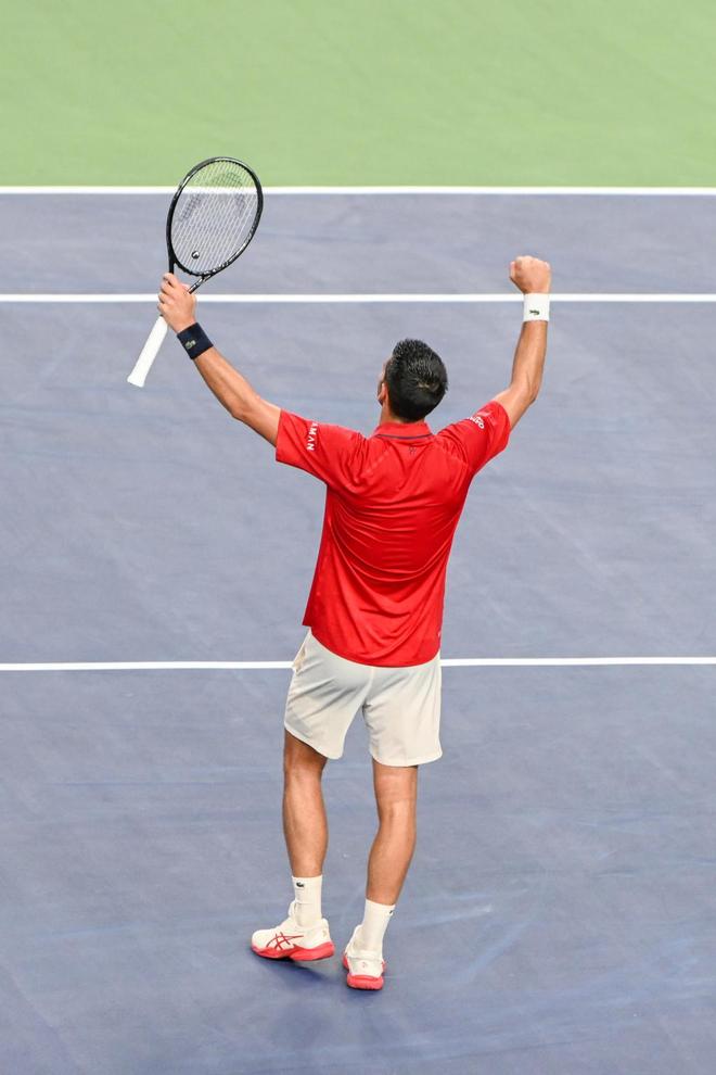 2025年10月7日,上海,久事体育场馆旗忠网球中心,赢得比赛后德约科维奇挥手和观众致意。澎湃新闻记者 朱伟辉 图