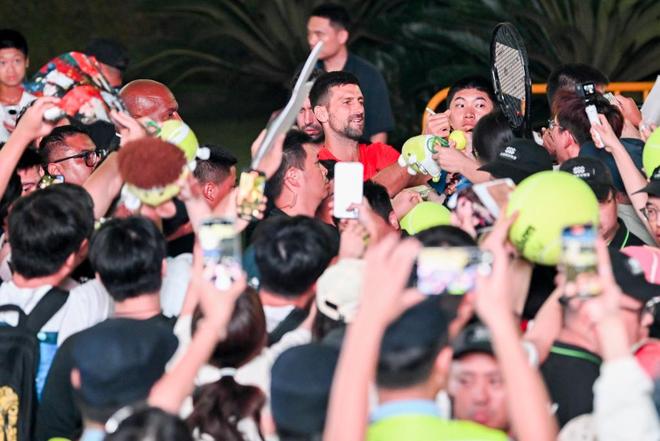 2025年10月3日,上海,久事体育场馆旗忠网球中心,赛后大量球迷等候与德约科维奇互动。澎湃新闻记者 朱伟辉 图