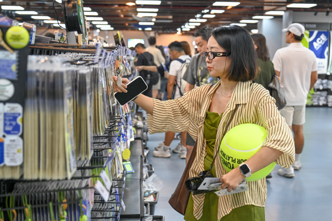 2025年10月7日,上海,久事体育场馆旗忠网球中心,观众正在选购商品。澎湃新闻记者 朱伟辉 图