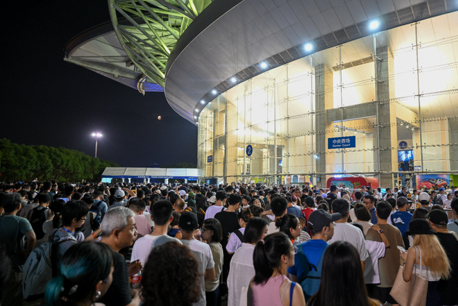 2025年10月7日,上海,久事体育场馆旗忠网球中心,观众排队等候进入中央场馆看球。澎湃新闻记者 朱伟辉 图
