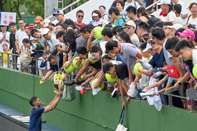 2025年10月7日,上海,久事体育场馆旗忠网球中心,比赛结束后球员给球迷签名。澎湃新闻记者 朱伟辉 图