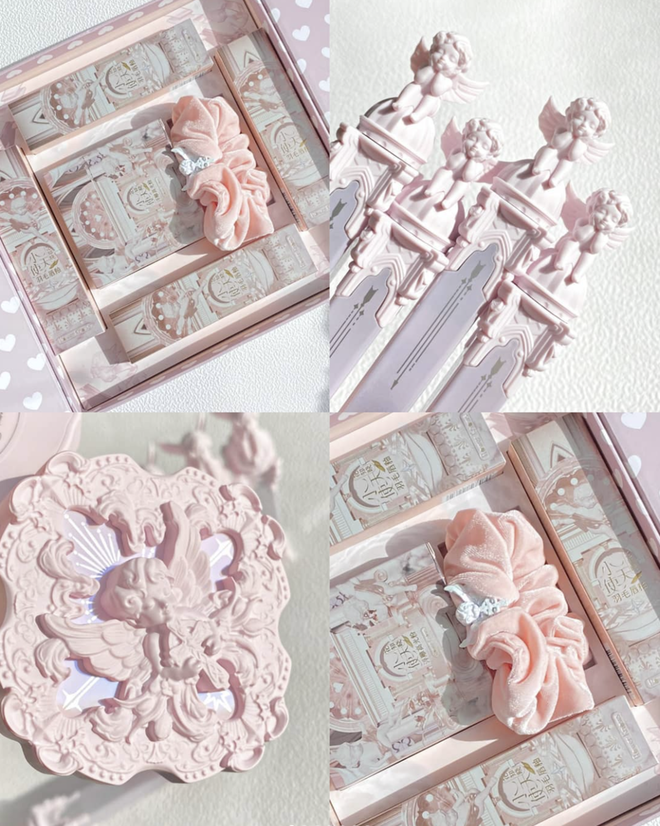 从产品来看,花知晓推出的小天使系列、独角兽系列、丘比特系列,灵感就取自西方神话,产品外包装更是频繁采用西方神话、宫廷建筑、油画作品常见的元素,例如天使、人鱼、天鹅等元素。