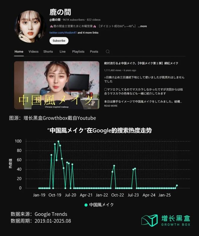 根据Google数据,“中国風メイク”在日本的搜索热度在2019年底、2020年初达到巅峰。这与花知晓进入日本市场的时间刚好重叠。