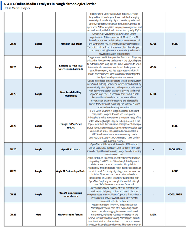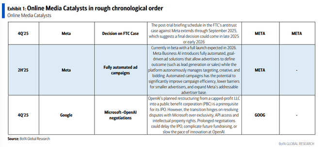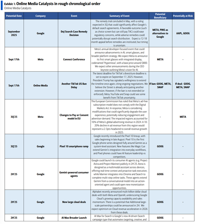 谷歌司法部搜索案裁决被美银美林列为近期最重要的催化剂。
