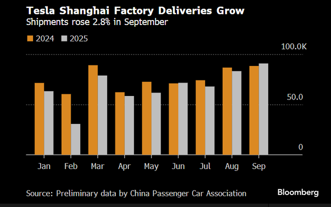彭博社分析指出,中国市场的强劲表现助力特斯拉创下惊艳的第三季度业绩。上周该公司公布全球交付量再创纪录,因美国消费者争相在9月30日税收优惠到期前抢购电动汽车。