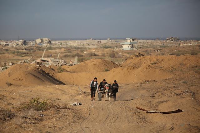 当地时间2025年10月11日,加沙地带,停火第二天,数百名巴勒斯坦人继续从南部返回北部。视觉中国 图