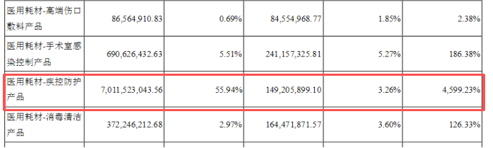 稳健医疗起家于1991年的医用敷料业务,主要生产传统伤口护理与包扎产品、高端伤口敷料、手术室耗材等医用产品。2020年疫情期间,公司感染防护产品营收高达70.12亿元,同比翻了46倍,一举成为业绩增长主力。