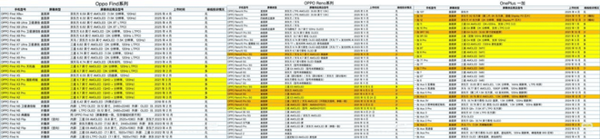 有小红书博主@燕Da侠整理了OPPO165款机型的数据,发现有30款是屏幕绿线重灾区。主要集中在OPPO Find x2/x3/x5全系列;OPPO Reno5/6/9系列;一加8/9/10/11系列;一加Ace 2/Ace 5系列。