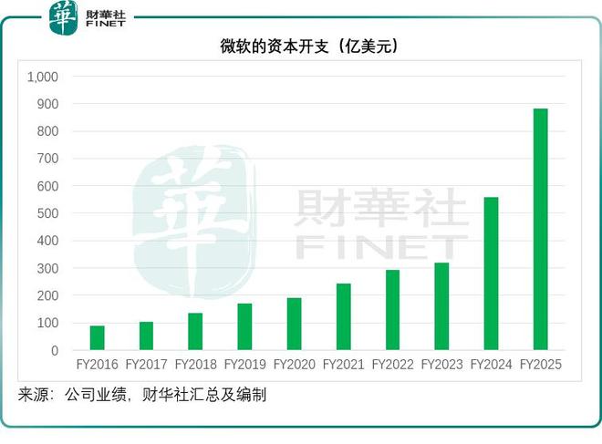 截至2025年6月末止的2025财年,微软以130亿美元回购了3,100万股,目前仍有573亿美元的已获批回购额度,同时微软也是"七姐妹"中资本开支预算最高的公司之一,尽管其表示2026财年资本开支将按年温和增长,但是我们翻查该公司之前的记录发现,微软这两年的资本开支成指数增长,2024财年和2025财年的资本开支分别按年上升74.61%和58.35%,至557亿美元和882亿美元。