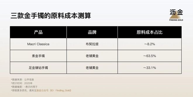 可以看到,老铺黄金的产品原料成本仍处于30%–65%区间,显著高于传统奢侈品牌单品的10%左右。