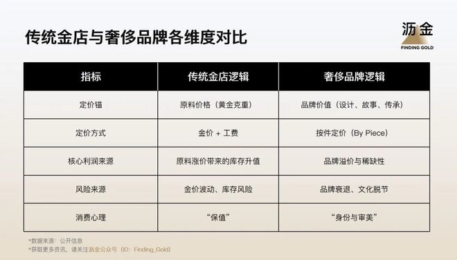 在消费者眼中,他们购买的主要是黄金金属本身的价值,评判维度是纯度和克重,所谓"品牌"只是买金的不同渠道。