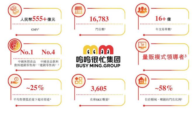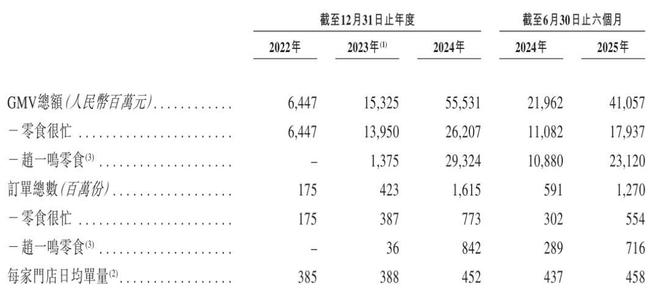 于2024年,鸣鸣很忙录得GMV为555亿元。截至2025年6月30日止6个月,鸣鸣很忙录得GMV为411亿元,较2024年同期增长86.9%。
