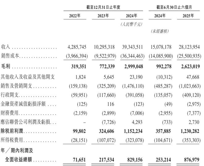 鸣鸣很忙2025年上半年营收为281亿元,较上年同期的151亿元增长86%;期内利润为8.77亿元,上年同期的期内利润为2.53亿元。