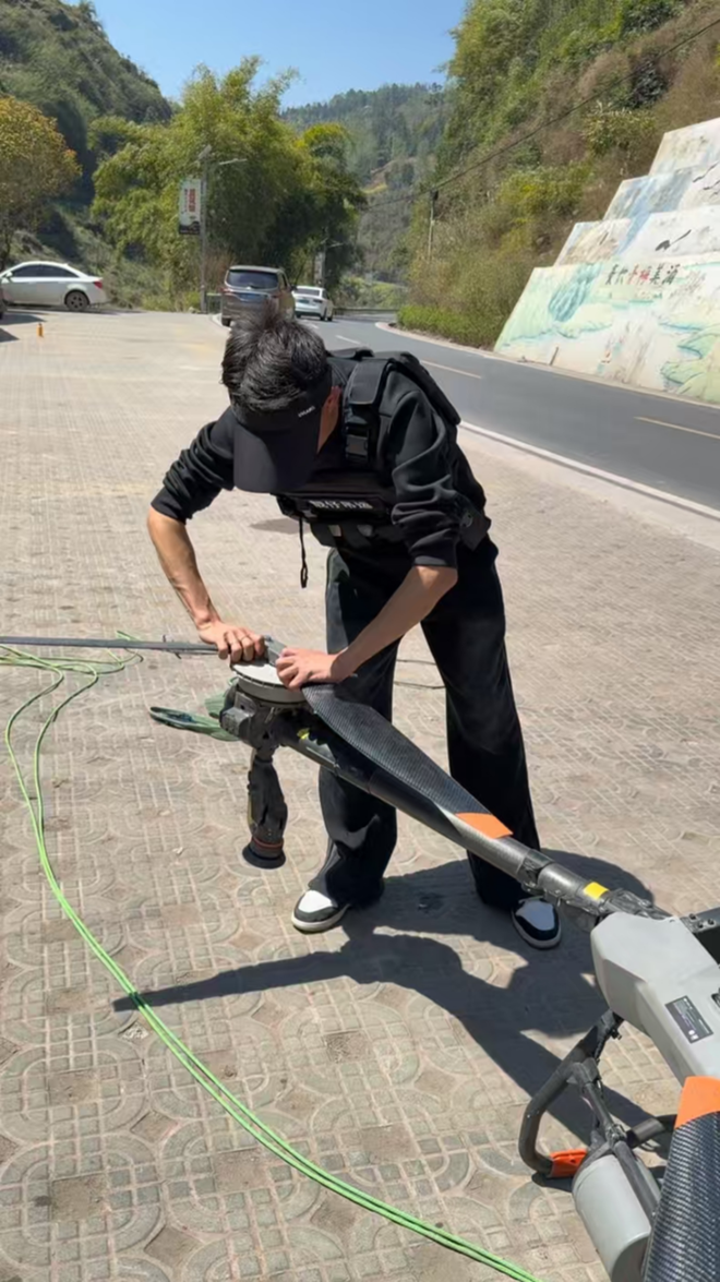 舒克偶然在抖音上刷到可以吊东西的无人机,体型巨大,承重也过关,舒克的嗅觉敏锐,马上觉察出来这类无人机在他的家乡的巨大市场。舒克立马买了一架回来,因为不会开又去考证,让自己持证上岗。