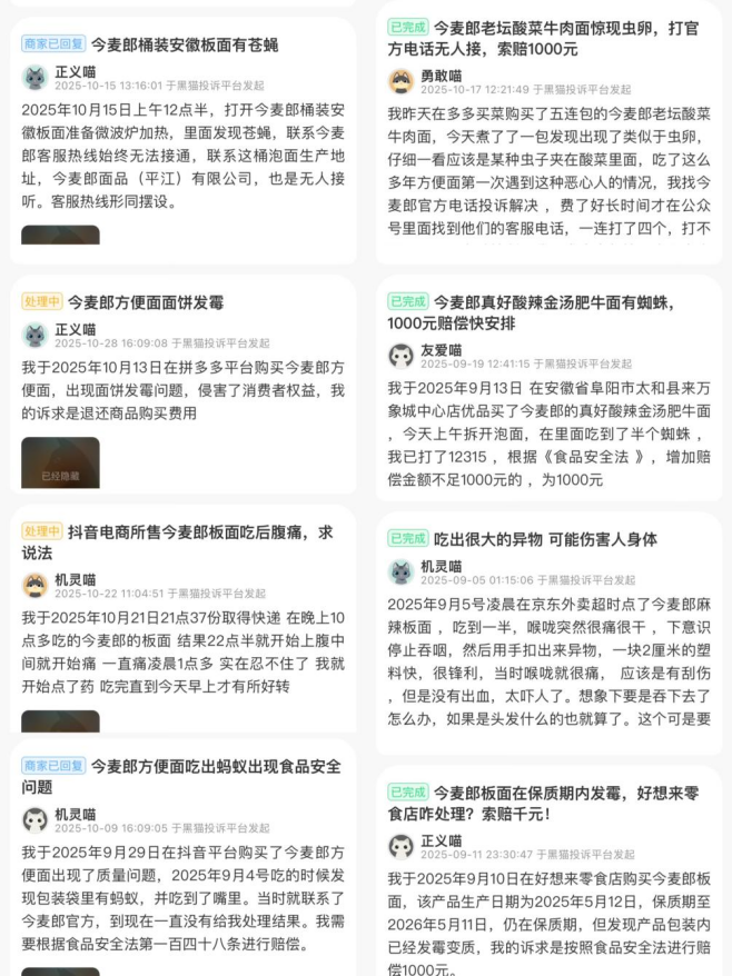 但这一事件也从侧面印证了今麦郎在生产质量管控上可能存在的问题。社交平台上频频出现的消费者吐槽,更加深了公众对该品牌生产环境与质量管理的疑虑。
